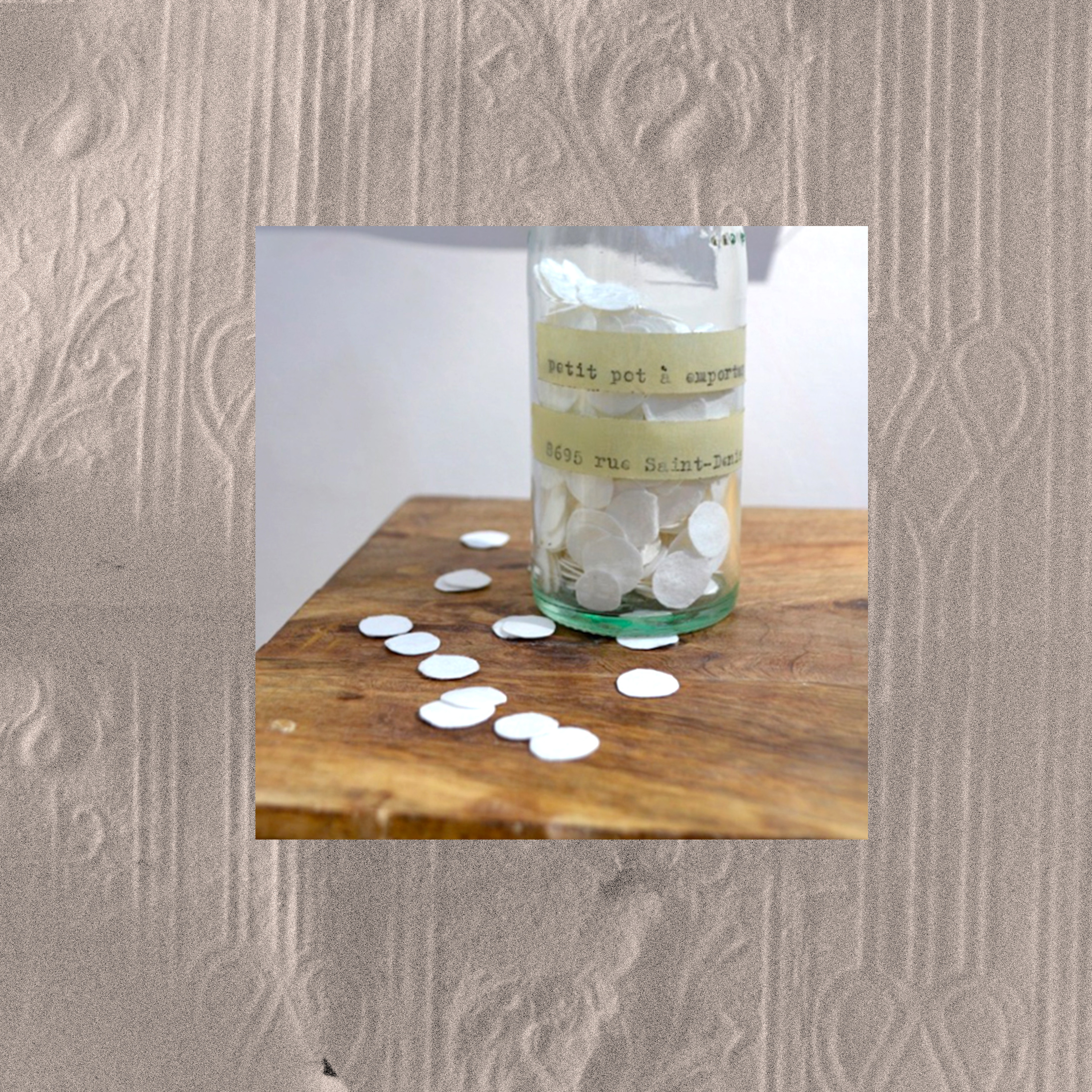 Confettis de papier fait main, moulé aux murs de mon premier appartement