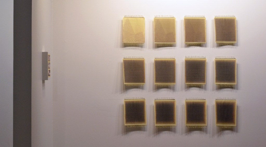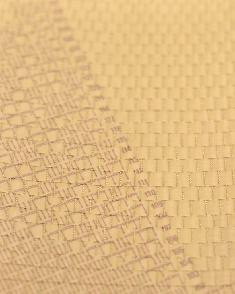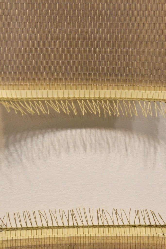 Par le processus de tissages rĂ©pĂ©tĂ©s, ce qui devait ĂȘtre une nappe est devenu un espace liminal, vacillant Ă la fois entre la prĂ©sence et l’absence. Cette bribe de patron s’est transformĂ©e dans le processus de dĂ©tĂ©rioration volontaire de l’image, chaque tissage devenant une traduction de son tissage antĂ©rieur, crĂ©ant une infinitĂ© de possibilitĂ©s visuelles et tactiles.